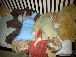 Naptimes are still a battle and I'm really not sure what we're going to do. They get so angry when I put them down and they won't stay in their beds. More often than not, they pass out on the floor in the middle of the room after yelling, banging on the door, and sticking their fingers under the door for half an hour. But of course, just as I'm about to lose my resolve and hug them they calm down and go to sleep! Seriously, toddler beds are so much more stressful than I ever imagined they would be. Nobody sleeps and if they sleep, it's not in their beds! I'm just trying to go with the flow and let them be kids but I am finding it very challenging. I do not give up control easily. But this is the plight of all Moms, I guess.